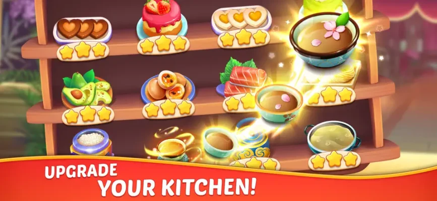 Collect recipes and upgrade your kitchen for faster service.