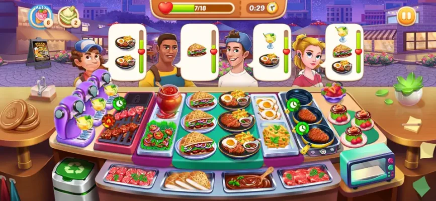 Fast-paced time-management challenges to test your skills. Special boosts and power-ups to enhance your cooking speed.