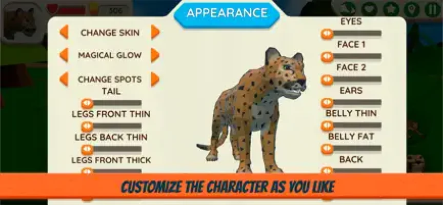 Customize the appearance of the cougar as you like. There are several skins to choose from. If desired, your pet may look like a panther, a jaguar, a cheetah, a leopard or another bright and beautiful big cat. You can adjust the magical glow of a cougar or add spots like a leopard to make the animal look even more impressive. For a more accurate setting, you can change: tail, eyes, ears, belly, neck, legs and back. Let your animal look the way you like.
