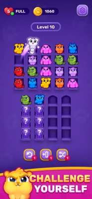 Your job is to carefully match them by type, color, or other traits to create perfect order. Each level presents new challenges, with more animals to sort and an increasing complexity, keeping the gameplay fresh and exciting. The game’s eye-catching design and calming music make it perfect for unwinding after a long day. Whether you’re a puzzle enthusiast or just looking for a way to relax, Cozy Sort delivers the perfect blend of challenge and tranquility. Its simple controls and progressively harder levels ensure that players of all skill levels can enjoy and improve. Features: - Colorful and charming graphics: Immerse yourself in a world filled with adorable animals and vibrant animations. - Relaxing and engaging gameplay: Sort your way to calmness as you focus on organizing the cutest critters. - Intuitive controls: Easy to pick up and play at any age. - Challenging levels: Test your skills with progressively harder puzzles that keep you engaged. - Casual and stress-free: No timers or pressure—play at your own pace. Whether you’re a fan of classic sorting games or new to the genre, Cozy Sort is the perfect way to unwind and have fun. Dive into a colorful, cozy adventure and discover the joy of sorting today!