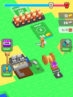 Despite the fact that this is the army tycoon game, you can create your polytopia. There are villages of craftsman in this blocks world, so you are not only a war commander, but also a castle crafter. Mine craft resources and improve your units. Upgrade your troops equipment in the blacksmith’s by silver and gold. Enjoy your time giving commands to craftsman building craft.
