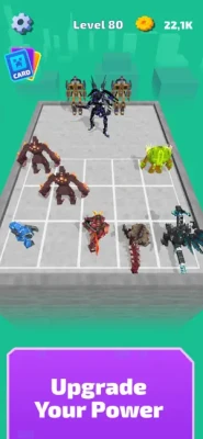 Craft & Merge: Drag and drop identical units or blocks onto each other to evolve them into a higher-level warrior.