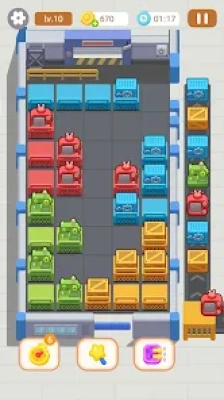 HOW TO PLAY👾: Ignite your logical side with Crazy Shelves! The main task is to create a clear passage for the goods by moving the containers in a strategic manner. As a dynamic bus simulator, your role is to ensure all goods are placed in their proper spots by sliding shelves and containers around to untangle the path. Learning the ropes might seem easy, but mastering the game requires tact, precision, logic, and a keen eye on seat jam or bus jam situations that you'll have to untangle.