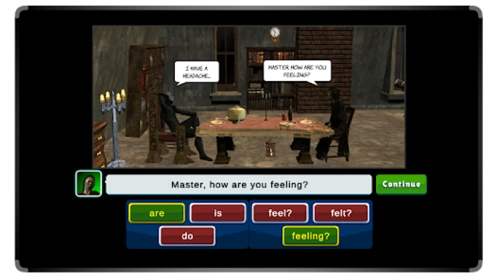 It's easy. The game consists of animations and comics with dialogues. Choose the words to form correct English sentences and dialogues.