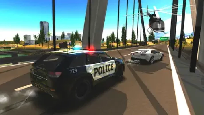 Drive over cascade and by dam, hidden away ancient temple, a small airport, different houses and farms, ruins, a camping place, and more in one of the best police car driving simulator game!