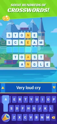 Typing Answers: Use the on-screen keyboard to fill in the letters. If you enter a correct word, the letters turn a specific color (usually green) to confirm the entry.