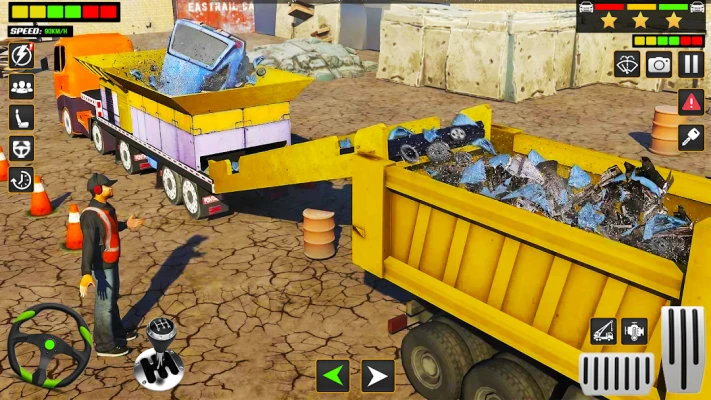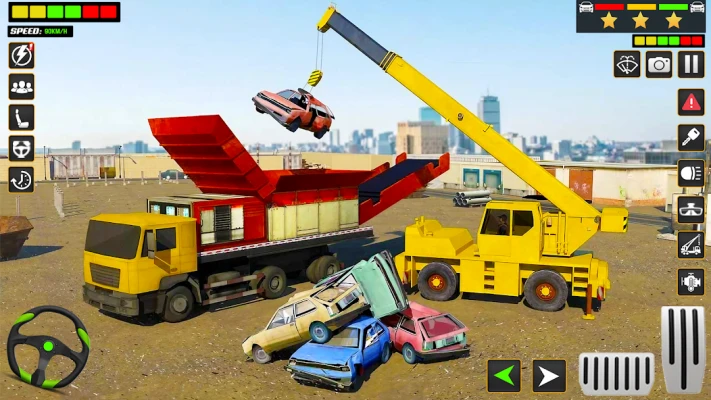 Scrap car crusher crane has extreme shredder machine that crush and demolish wrecked cars. Become heavy crusher operator for transforming wrecked car into scrap bits. The impossible car shredder has a grinder with crushing machinery surrounding it. Show eagerness of crushing junk cars with majestic crane operating missions and garbage truck driving. Operate magnetic grapple crane to lift rusty cars and drop them in car shredder. Turn on crusher machine to demolish rusty cars into scrap bits. Collect scrap metal in dumper truck and transport junk to a dump site for recycling purpose. Drive cargo pickup truck from auto repair shop to junkyard and continue crane missions while crushing wrecked cars.