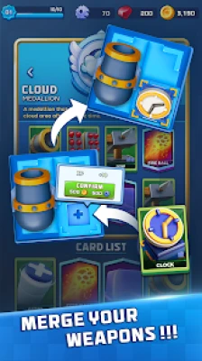 Build a base with your deck. Place your buildings on the map to attack and defend your territory. Use your weapon cards to aim and attack on the enemy grounds to conquer. Protect your King, castle and defenses, level up your heroes deck and win PvP battles!