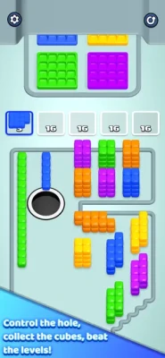 - Satisfying color-matching mechanics – Only the right cubes can fall into the hole!