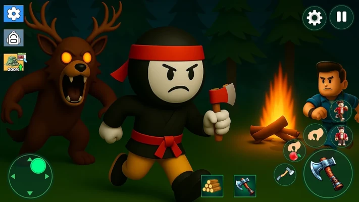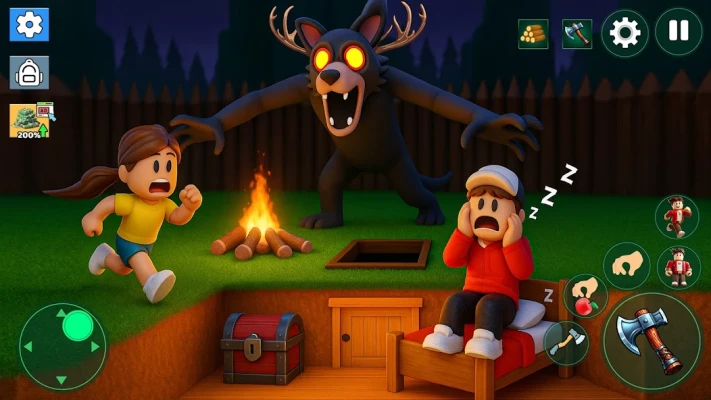 Build a small shelter, make simple tools, and protect yourself from dangerous animals that come out at night.