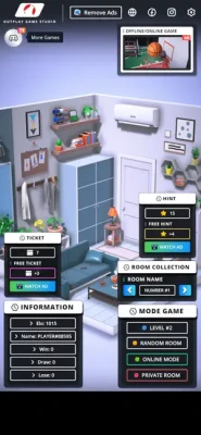 - 2 Offline Mode: Level Mode, Random Room (Select 1 of the rooms available in the game)