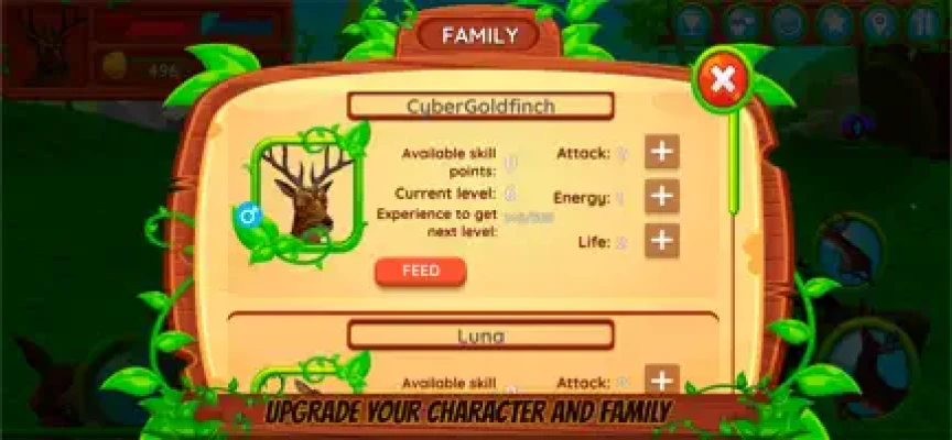 To survive in the forest, you need to use all the possibilities! Obtain experience by performing tasks, defending yourself against other animals and collecting food. Having received a level, the character can spend experience on attack points, energy or life. There are also special skills that allow you to increase the speed of the animal, collect more food, get more resources for actions in the game, etc.