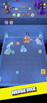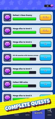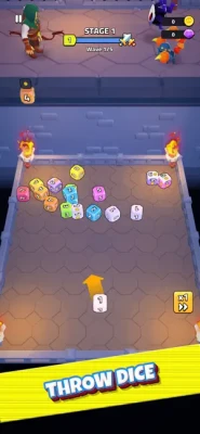 Throw dice, merge them, defeat enemies, buy powerups, complete quests and win game!
