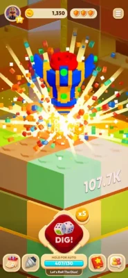 Roll the dice to move and dig through the ground, collect coins, gems, and rare treasures along the way.
