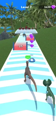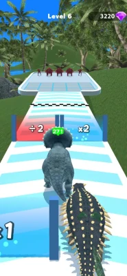 Eat the Dinosaurs blocking your way. They will make you stronger. Avoid enemies stronger than you wisely and challenge to the Black T-Rex. Nothing can stop you. Keep going, keep Eating, keep growing!!