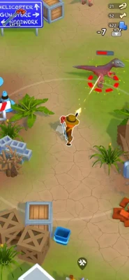 Upgrade and buy new weapons to defend yourself. Find spare parts that will help you to fix the helicopter and get out of this Jurassic Park.