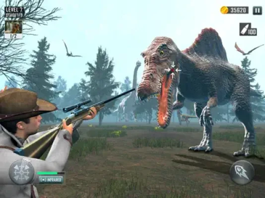Dinosaurs have returned to rule the earth. Set out the ultimate dinosaur hunting adventure and prove you're the top hunter. Explore a huge 3D world of dinosaurs. You land on a specific area inhabited by dinosaurs. You will progress from a wildlife observer to a stealthy and ruthless t-rex hunter. Get ready for this hunting adventure. Hunt catastrophic creatures and prove yourself as a hunter in this enthralling world. Manage your resources and stay alert to survive the dangers of the wild. Are you ready for the test of survival?