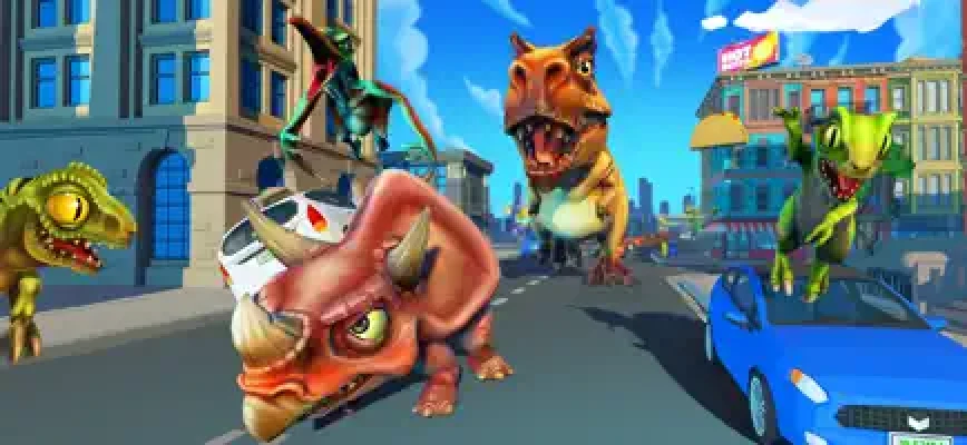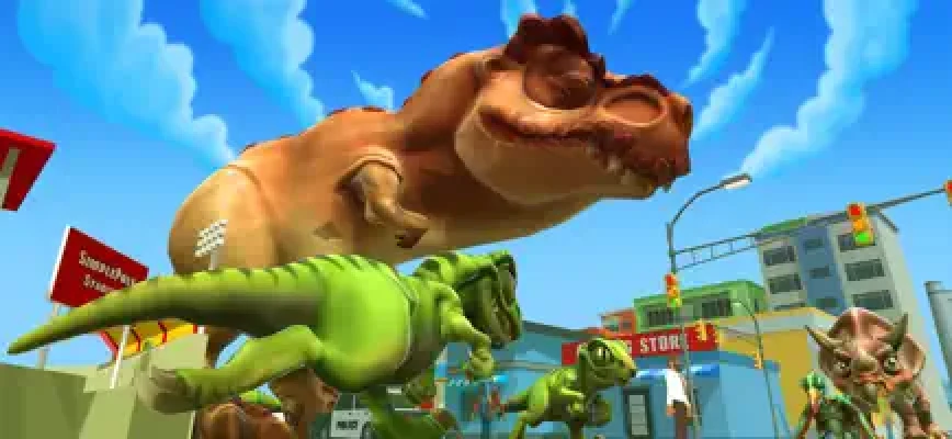 Our dinosaurs escape from the park and now demolish the city. You and others players try to survive as long as can. How big you can be? Eat everything if you are big enough.