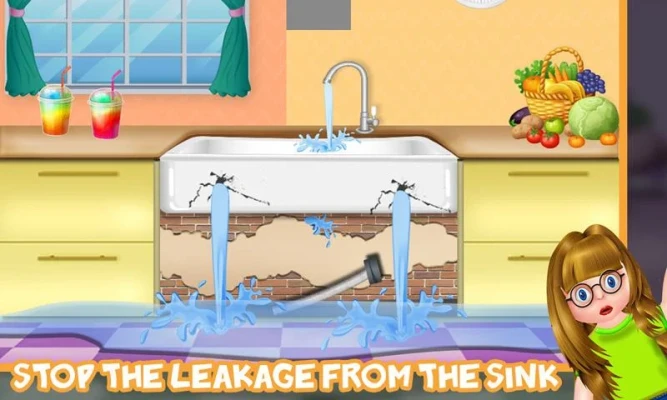 Little housekeeper and cleaner now become the awesome repair and fixer guy to fix the damaged sink pipe. Use repairing mechanic tools to fix the pipes to stop the water leakage. There is a birthday celebration dinner in the house so arrange the utensils, plates and dishes on the food dinner table. To have the best dream meal in the house. This dish washer and dish cleaning game contains multiple fun learning and house care activities. Now play this dish washing games for girls to decorate, design and makeover the home with perfection.