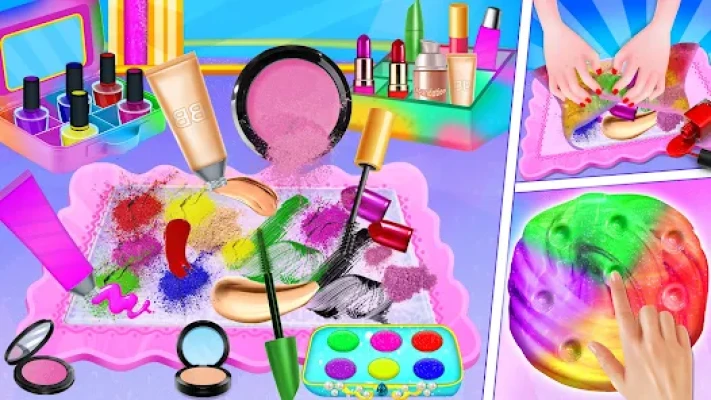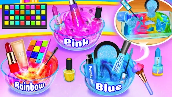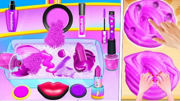 The biggest makeup kit compilation is here in this new makeup maker game for girls and boys who can't stop being obsessed with slimes. Also enjoy funny makeup slime and play with this squishy, oozy and stretchy toy on your mobile device like never before and try not to be satisfied! Now enjoy many colors including unicorn slime, rainbow slime, iceberg and fluffy in this real DIY slime simulator game. To see the fun, break up the DIY game and drag the screen to see the super realistic slime simulation.