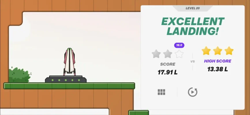 Fuel efficiency is key. Earn bronze, silver, or chase that hard-to-get gold star. Each attempt brings you closer to mastering the perfect landing.