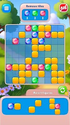 - Strategically place blocks to create complete rows or columns and earn points, reminiscent of classic Tetris games.