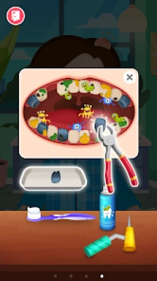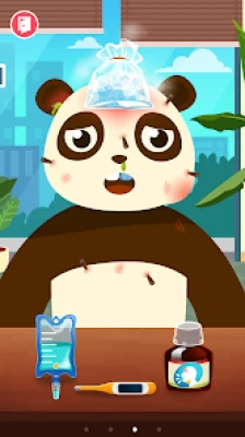Oh no! Our friendly giraffe has a fever! Quick, grab an ice pack to cool her down. Did a little girl consume too much sugar and now has cavities? Fret not! With our dentist tools like cavity sprays and tooth extractors, you're well-equipped to handle the situation. Oops, the honey-loving panda got stung by bees! But don’t panic; our clinic provides tweezers to safely remove the stingers.