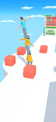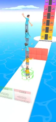 Always stay young and try to reach the end of the road Try to stay young and build your human tower. Overcome obstacles and win the game.