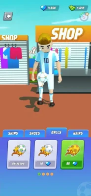 Earn Gems: Collect gems from mini-games to buy clothes, shoes, and ball skins in the shop.
