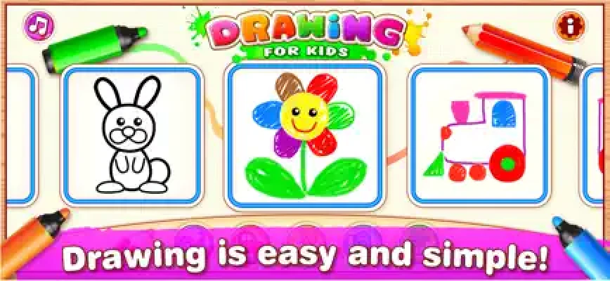 "Drawing for Kids!" is a game which gives little children a wonderful opportunity to create and explore the creative process of visual art.