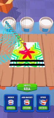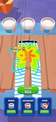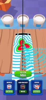 - Upgrade the speed, add buckets & merge the colors to make different ones with the money you earned.