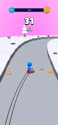 Drift in different places with easy joystick controls! Don't stop drifting to get more points! Be careful of the obstacles!