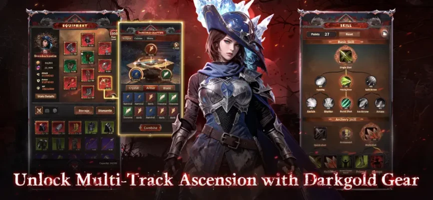 Darkgold Crafting fuses random stats and star levels, making every weapon, armor, and accessory unique. Use targeted forging to lock stats and create exclusive gear tailored to your playstyle.