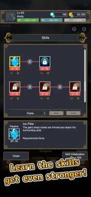 Use the skill points granted each time you level up to acquire skills to advance in battle.