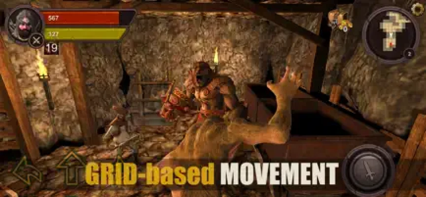 The grid-based controls are similar to old-school dungeon crawler games from 90s. That means 90 degree turning, movement on a grid. It features not only button controls but also joystick.