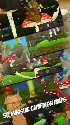 Battle in beautiful SCORCHED EARTH™ style cross section environments. Equip fully customizable Mobiles and Avatars! Build the perfect counter against your enemies. Make new friends along the way. Change your strategy depending on the landscape. Use special Items to knock out your opponents. Power up your mega SS weapon to deal devastating damage. Level up to 88 in this version. Get new items with each level.