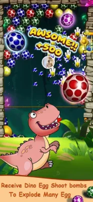 At times, when special eggs or bubbles will appear on the screen, and if you can make them explode, you'll receive attractive rewards such as doubled points, fireworks, and more. As an egg shooter or bubble shooter, you can also receive dino egg shoot bombs to explode many eggs or bubbles at once. With its colorful graphics, catchy sound effects, and addictive gameplay, Dynomite is a game that will keep you coming back for more.
