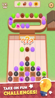 Enjoy the unique slide & match experience with this popping puzzle. Pick up the eggs then drop them down onto the board and enjoy the hatching chained reactions, until you clear all the level goals.