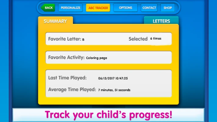 • Tap on the star button to discover even more letter activities.