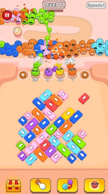 This is a super casual puzzle game! Your core objective is to repel the ever-approaching waves of evil emojis, and the key to victory lies in the unique color puzzle mechanics. Click on the boxes that match the emoji's color to fire a cannonball to accurately destroy them. But be careful, there are only 6 empty slots for the boxes. Once the box is full and there's no box with the matching emoji color, the game ends! As the levels advance, the emojis arrive faster and their color distribution becomes more complex. You must make quick decisions and flexibly deploy the boxes in a fast-paced game to repel the evil emojis. Experience the dual-tasking thrill of color matching and resource management!
