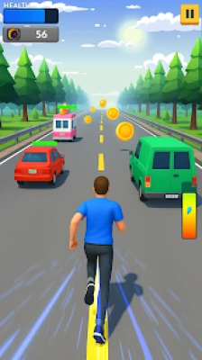 In Endless Road Running Game, you must run nonstop on challenging roads filled with traffic, obstacles, and unexpected turns. Swipe, dodge, and move fast to avoid cars, barriers, and roadblocks while collecting rewards and boosting your high score.