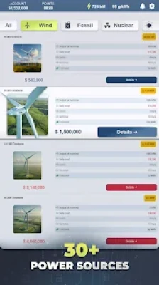 ⚡Customize and upgrade wind turbines, solar panels, power plants and more
