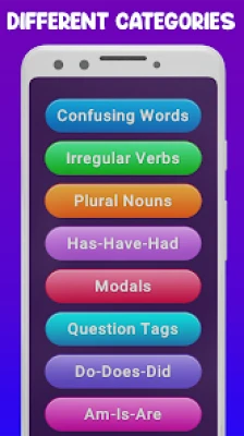 Test your English knowledge across 8 categories(more would be added in upcoming releases) having tens of English grammar exercises and hundreds of questions which help in improving English writing and speaking skills.