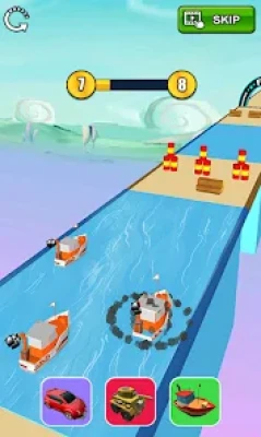 - Sports car is suitable for simple tracks - Tanks can destroy the road hurdles - Airplane can fly where the runway ends - Ship can float fast on water floating tracks - Police car is speedy in front of attacking hurdles - Snowplow will be your ride on snow track - Fire brigade will move fast on Fire tracks - Bike will move fast on narrow tracks