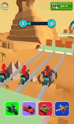 Get ready for Vehicle transform race! In this speedy and epic race you need to transform vehicles according to the challenging tracks. Switch racing vehicles on runway according to the obstacles.
