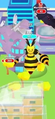 The gameplay of Evo Crazy Beasts 3D is straightforward - choose your monster and cause maximum damage in the time allotted for the round. For each destroyed object, you get experience. When your monster levels up, it evolves, getting bigger, and its appearance changes. Turn the little animal into a huge dragon bigger than skyscrapers! But keep in mind that it won’t be easy at all, you are surrounded by opponents who are eager to throw you off the top of the leaderboard and take all your earned experience. Fight and crush them before they have time to understand anything. Smash the city in the allotted time and rise to the top of evolution!