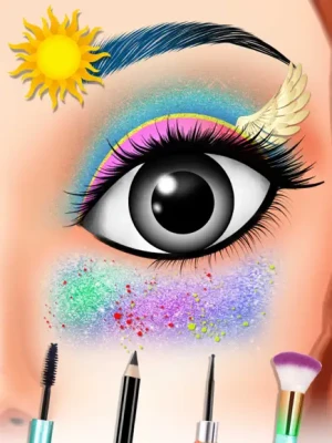 Make your own eyeshadow, eyelashes, and artistic eye makeup. In this makeup artist eyeshadow game, pick from a variety of face kinds. To further enhance the dreamlike and delicate appearance of your eye art, use skin tones from African, American, Egyptian, Indian, and Korean people in eye artist games. To enjoy the DIY and eye paint on your preferred charming skin, simply tap and swipe as a pro eye artist. Simply download and enjoy this game for girls who love eye art and want to become an eye artist. Play amazing makeup games while enjoying ultra stylish glitter eye painting. Show off your abilities at a lipstick painting game by creating some wacky eyelash designs. Younique eyeliners and other makeup artist supplies are ready to help you achieve flawless makeup. Send your buddies screenshots of your full face of cosmetics and painted eyes.