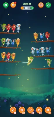 The gameplay mechanics of Fairy Sort - Color Puzzle are intuitive and accessible. You can effortlessly move fairies from branch to branch by swiping or dragging them, ensuring a seamless and enjoyable experience for players of all ages. The simplicity of the controls allows you to fully immerse yourself in the delightful fairy tales world with beautiful fairy.