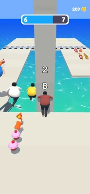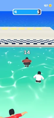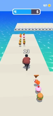 Race with bots. While racing use the treadmill, push the bridge, and swim into the water for shortcutting the road. Your fat level depends on how you can shortcut the racing road. Eat more and run ahead!