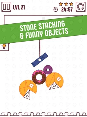 Stones, boxes, bananas - whatever you can imagine. Place all the stuff to make a steady tower and have fun finding the balance. Think over, drag and rotate elements, cut the rope with double tap and drop objects gently.